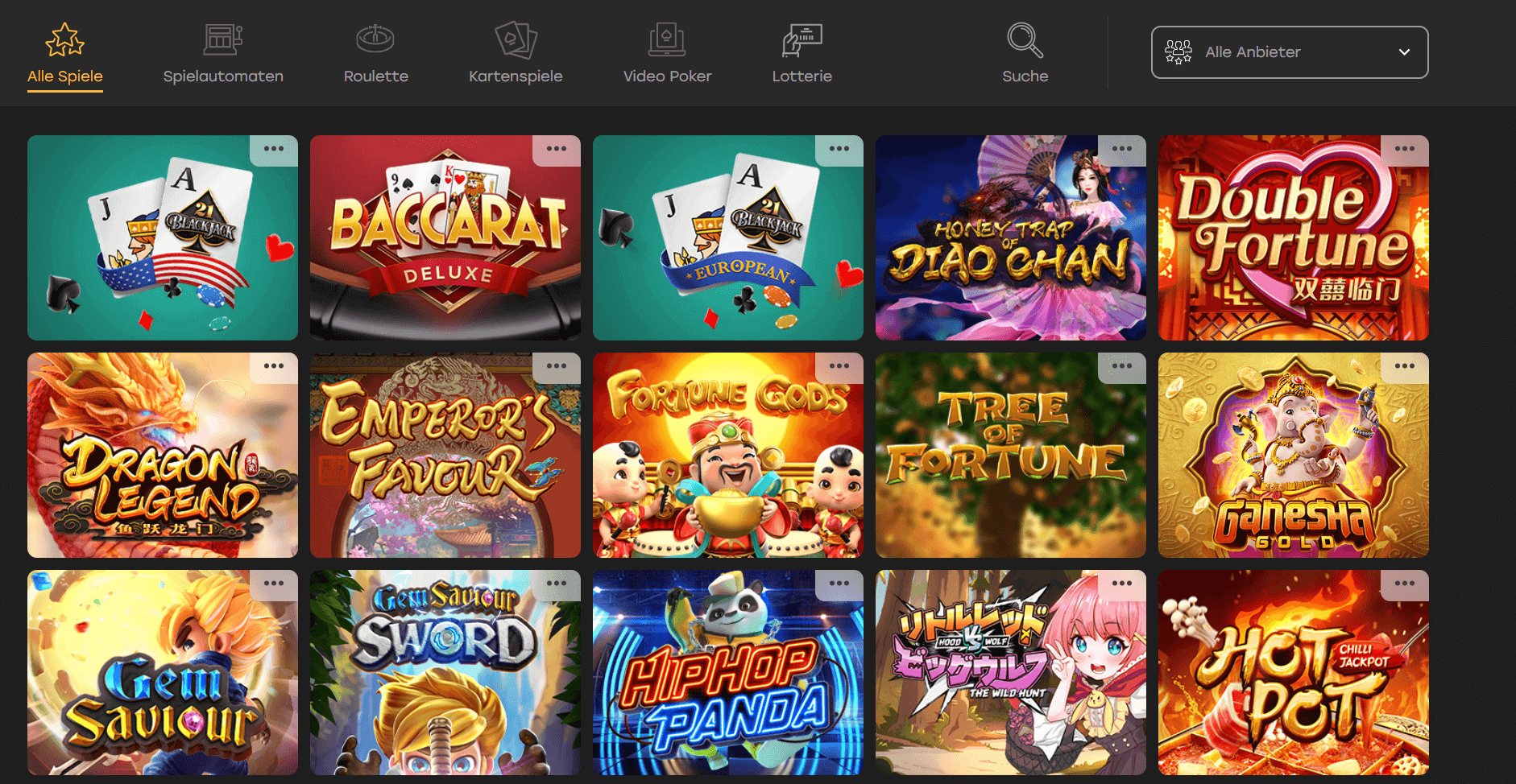 Baccarat, Bingo, Blackjack, Online Casino War, Craps, Collision, Dice, HiLo, Reward, Keno, Limbo, Live Supplier, Lotteries, Mines, Cash Wheel, Plinko, Live Roulette, Scratchcards, Sic Bo, Slots, Video Casino Poker